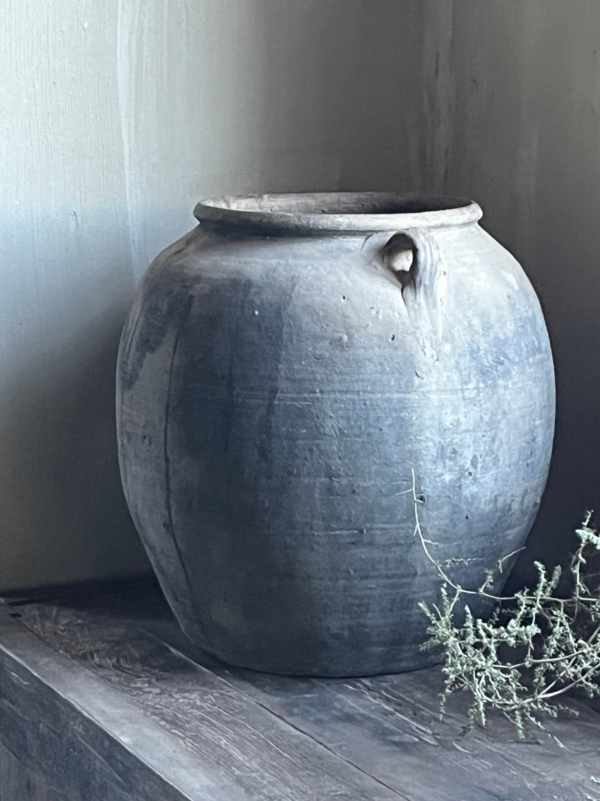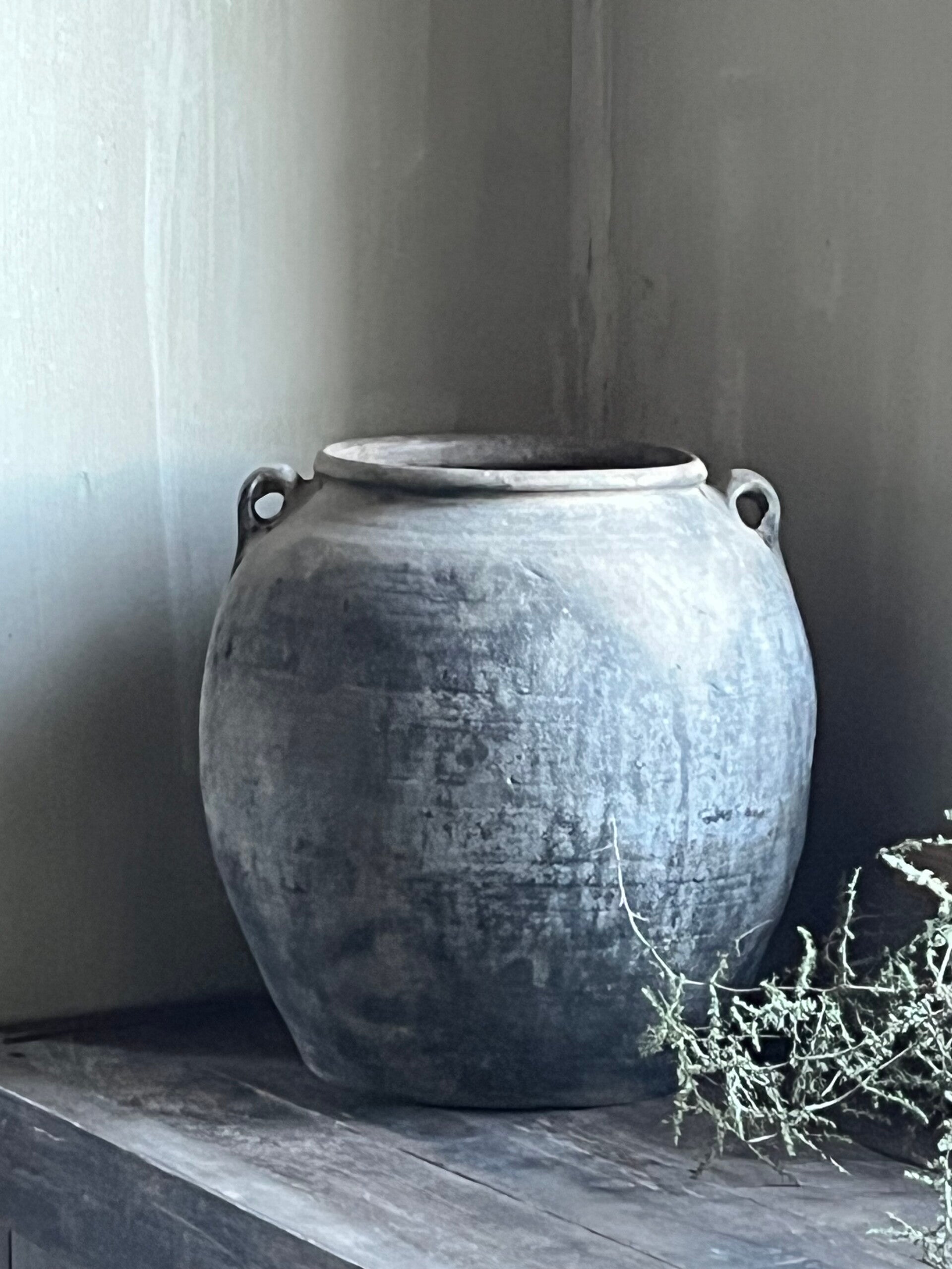 Je kan er een klein boompje in doen of een aantal takken maar ook zonder iets staat dit prachtig een stoer, sober en landelijk interieur.
