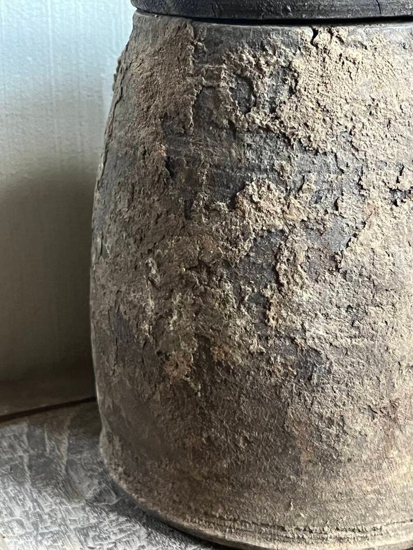 Prachtige nepalese kruik met een mooi sober patina met touw en deksel!