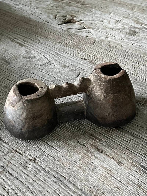 Hoe leuk dit oud dubbel oliepotje in een mooi verweerde kleur.