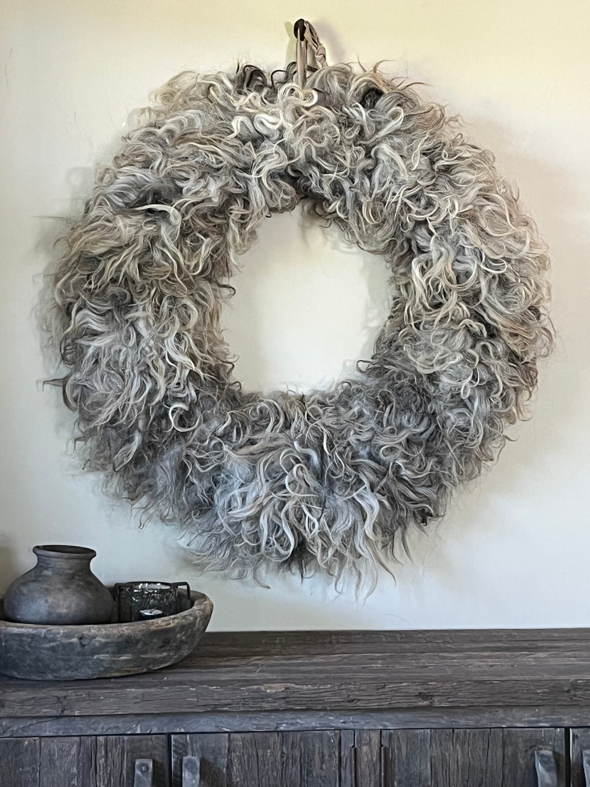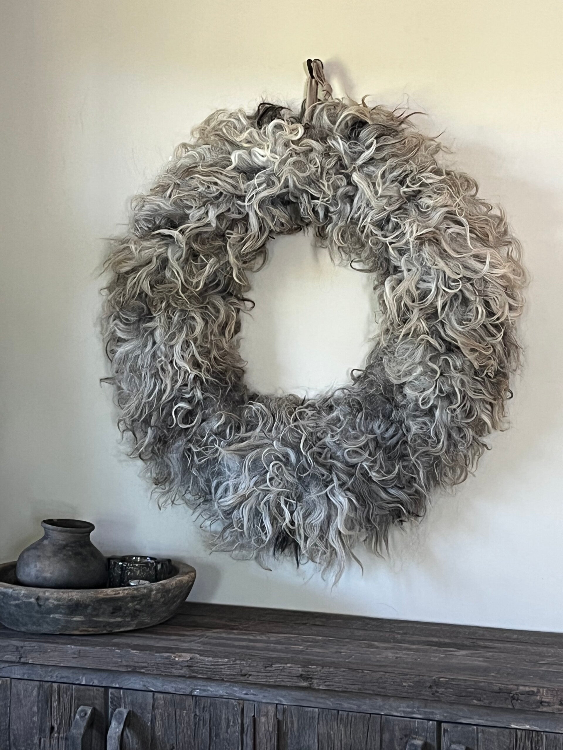 Een mooie en grote! Wolkrans, gemaakt van schapenwol, diervriendelijk.