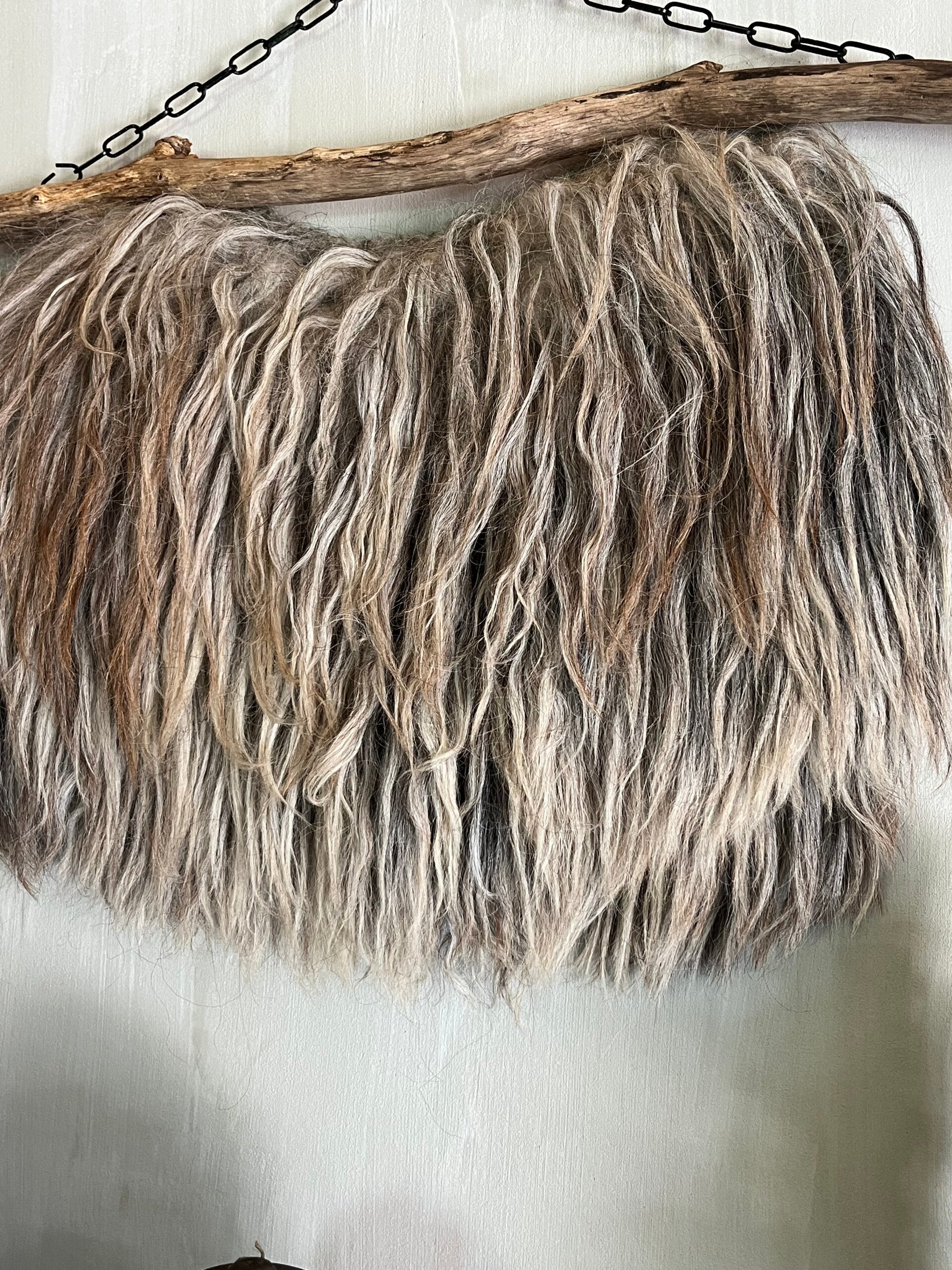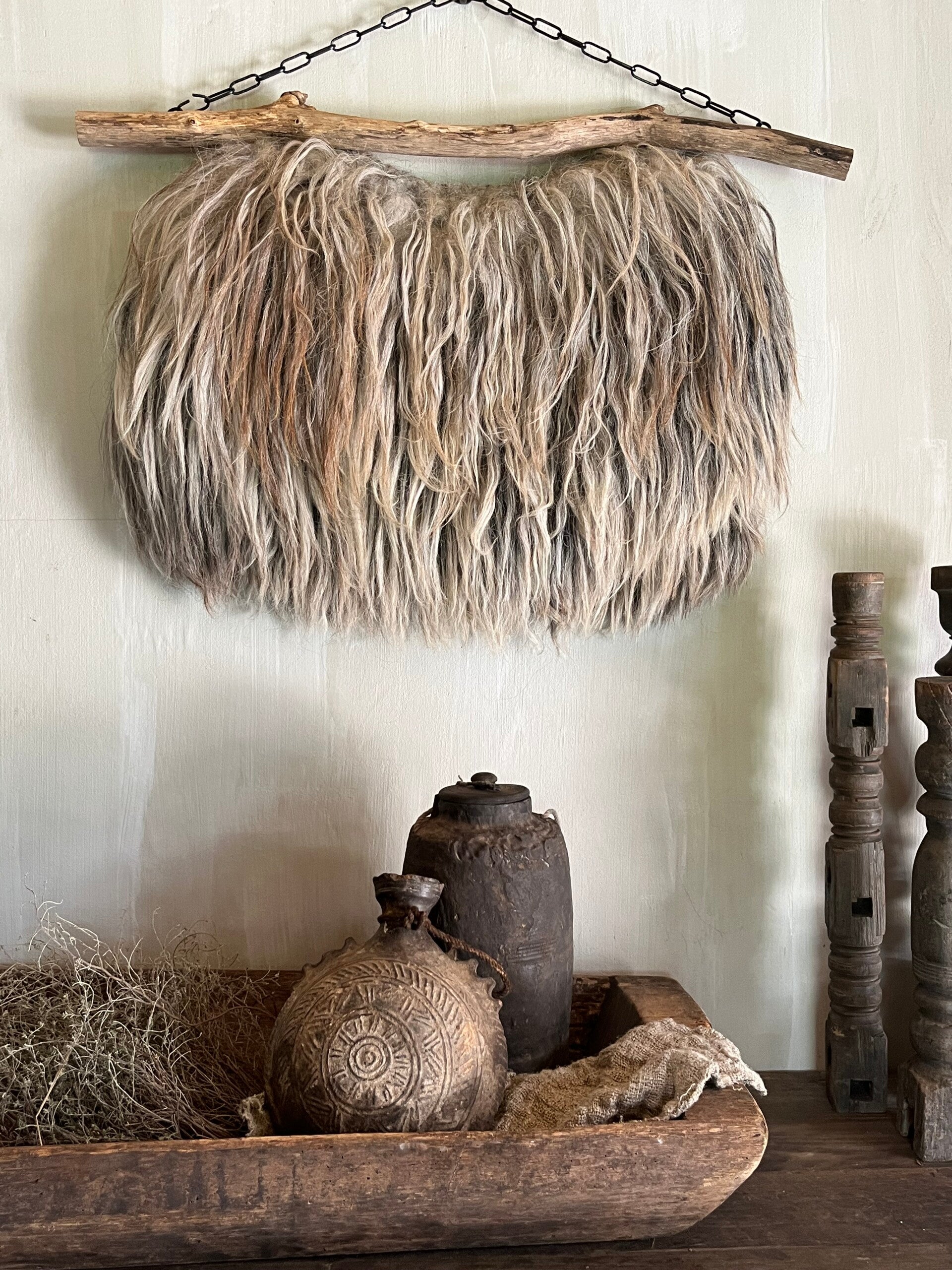 Alle vachten en wandhangers zijn uniek, er is er maar 1 exact hetzelfde. Is deze verkocht, maar deze sfeer van stoer, sober, landelijk en weer eens iets anders dan een schilderij wil jij ook? Dan is er de optie om indien er op dit moment niets beschikbaar is wat je zoekt, ik er 1 speciaal voor jou maak!! Neem dan even contact met mij op.