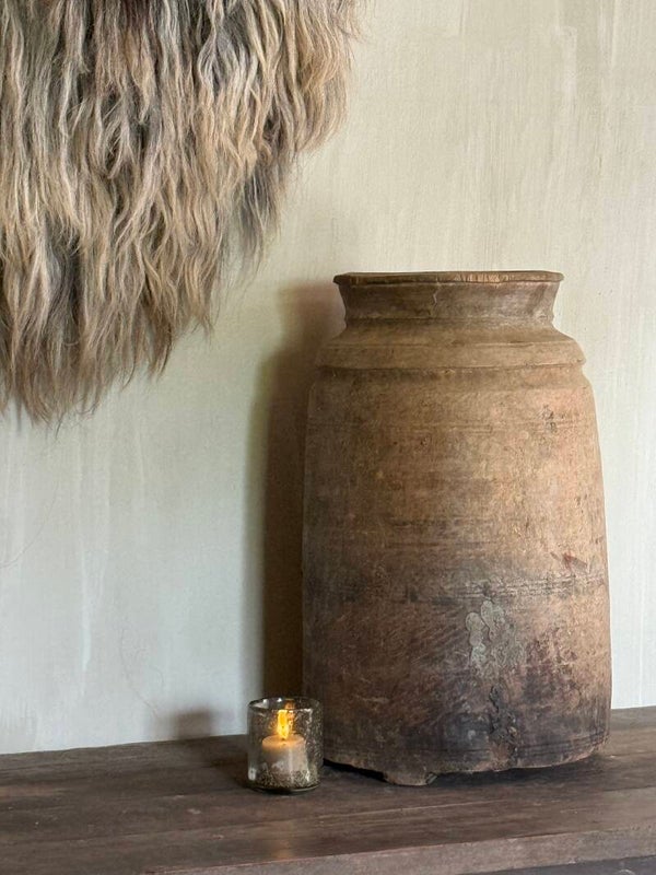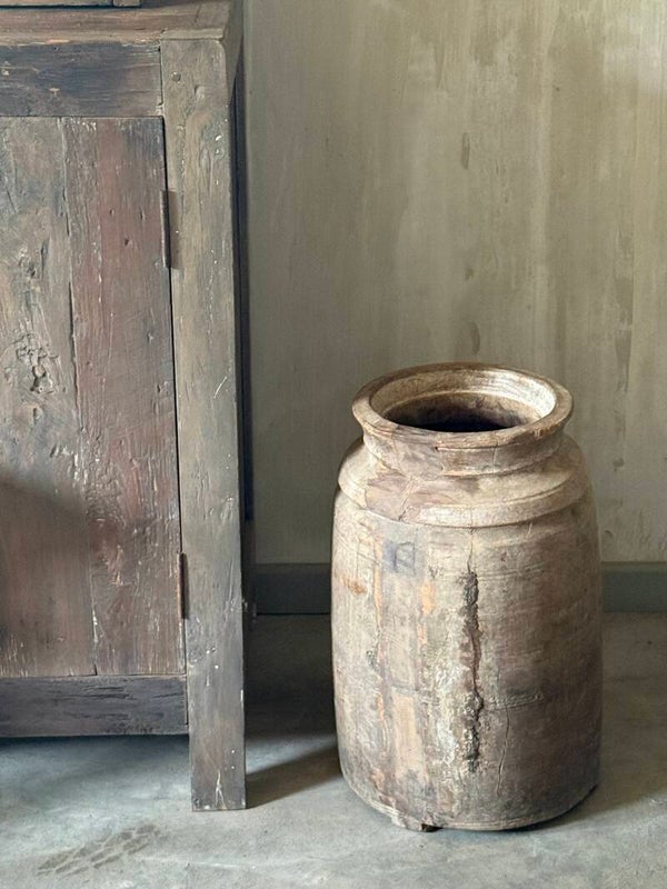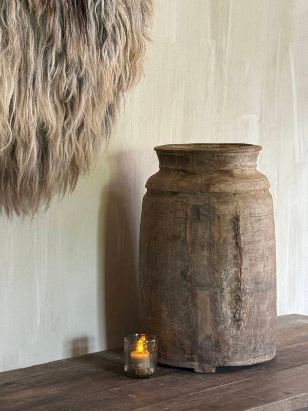 Mooie oude houten naga kruik, hij is groot (vandaar de foto met een windlichtje erbij )