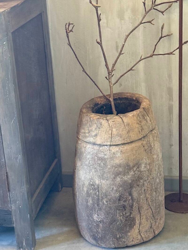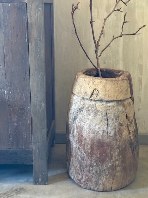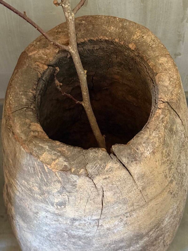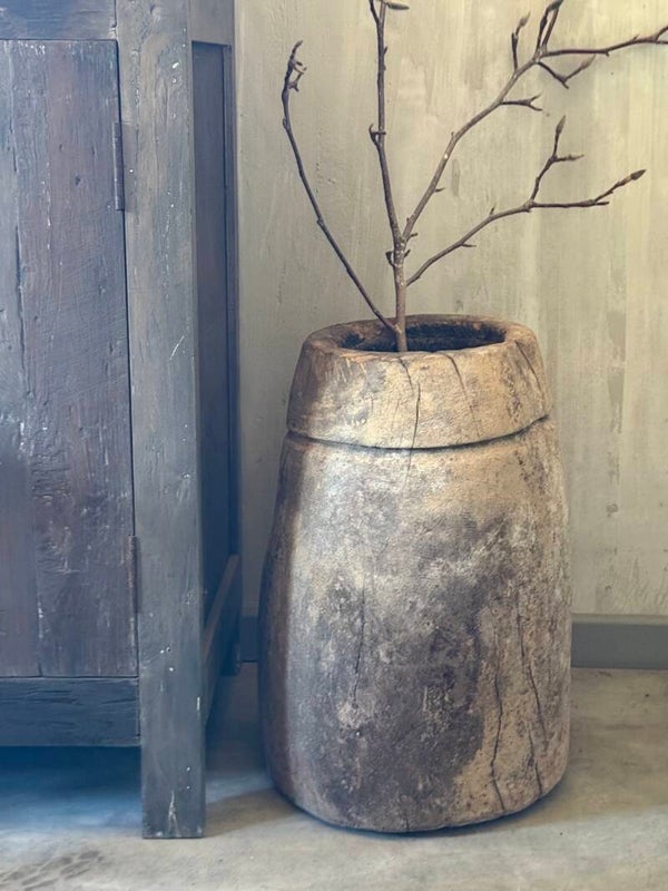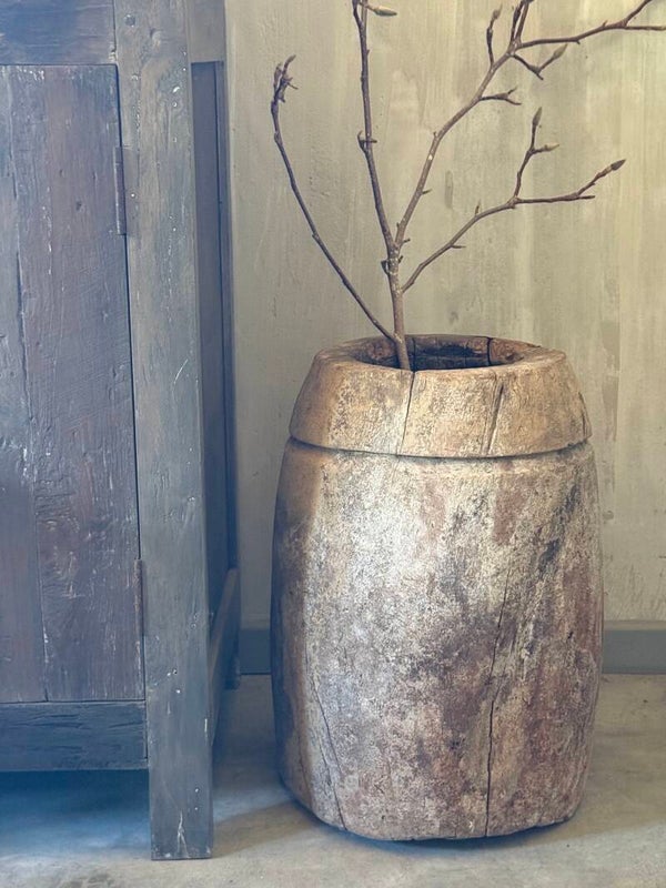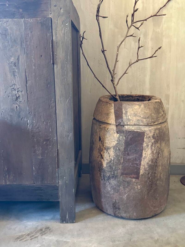 Mooie oude houten pot / kruik, hij is heel groot en zwaar