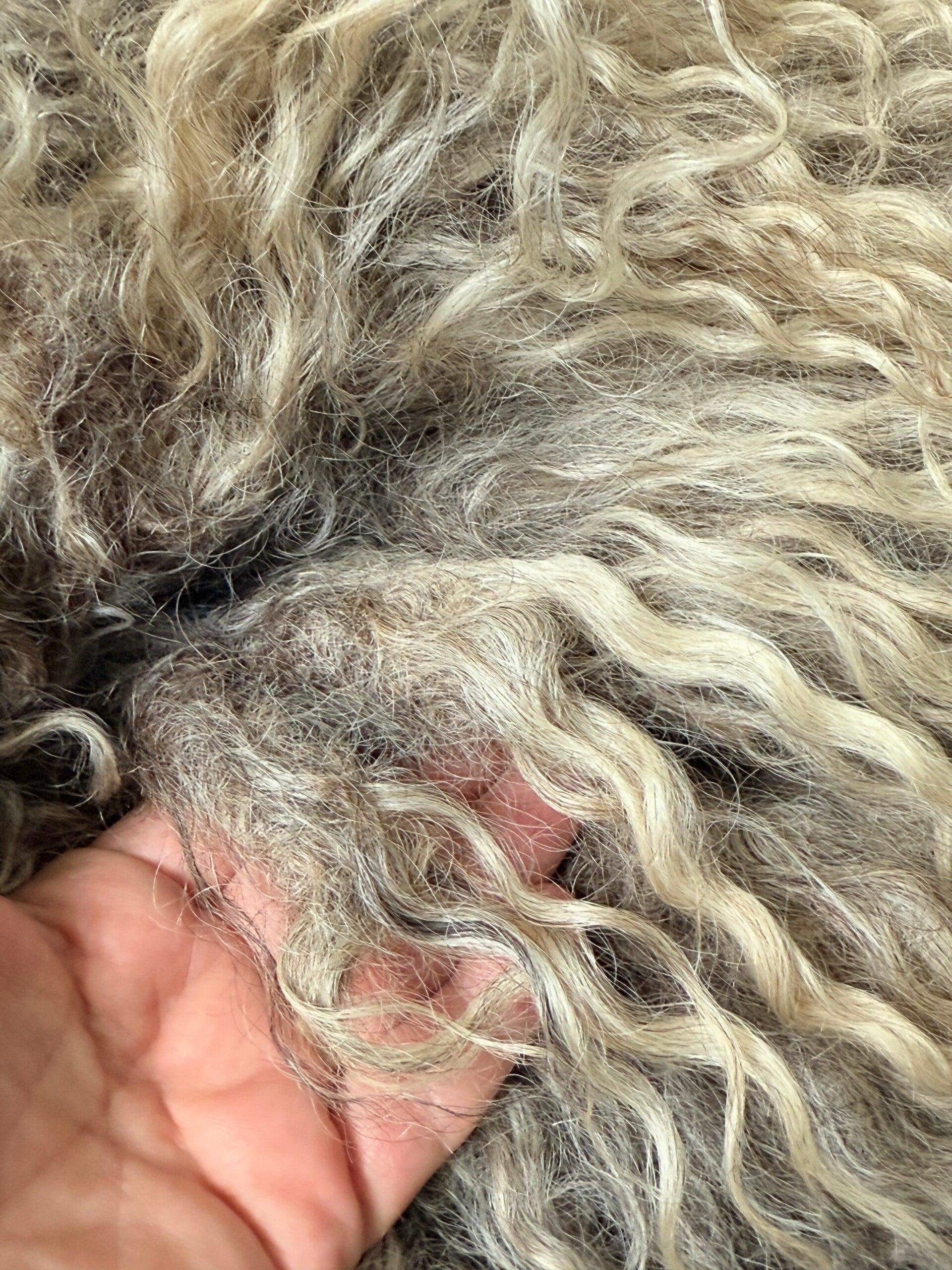 Dit vacht is stevig gevilt, heeft ook een aantal onderin de vacht vervilte stukjes, zie je zo helemaal niets van, maar wil het toch genoemd hebben. Kom langs en oordeel zelf 😉 ( prijs is hierop al aangepast )
