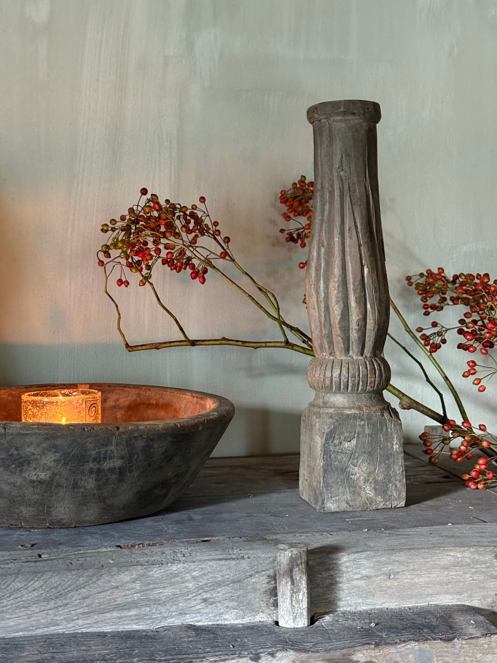 Het is een oud item met de mogelijk daarbij behorende imperfectie, houd daar rekening mee. Dit geeft juist de sfeer van stoer, sober en landelijk.