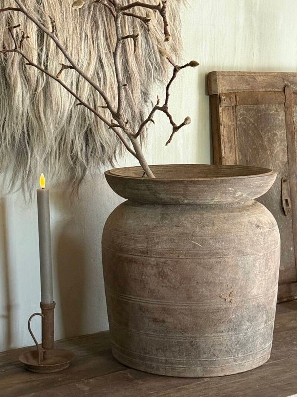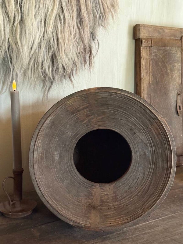 Het is een oud item met de mogelijk daarbij behorende imperfectie, houd daar rekening mee. Dit geeft juist de sfeer van stoer, sober en landelijk.