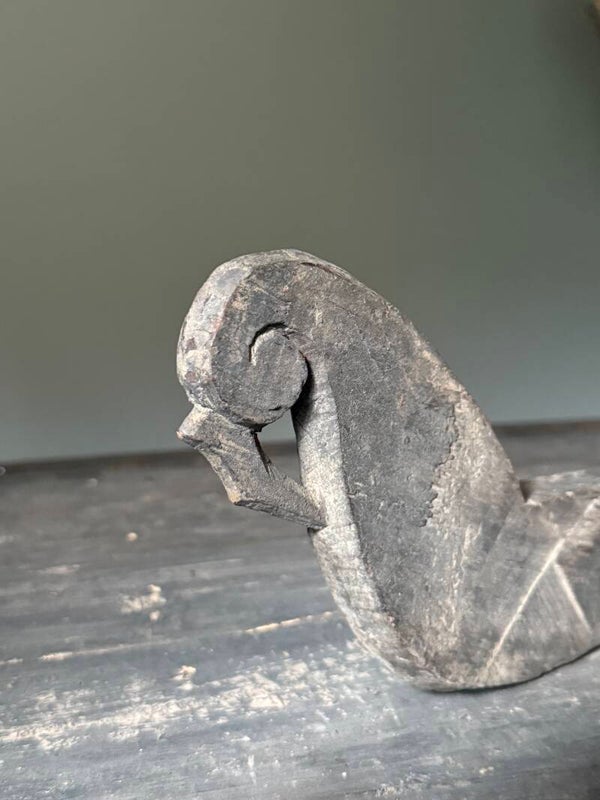 Zo leuk dit smal oud houten item met snijwerk "vogel"