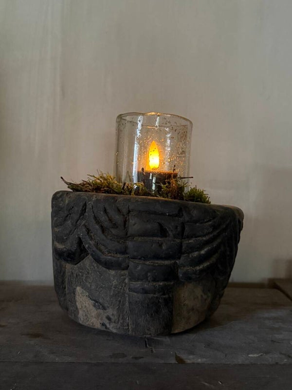 Het is een oud item met de mogelijk daarbij behorende imperfectie, houd daar rekening mee. Dit geeft juist de sfeer van stoer, sober en landelijk.