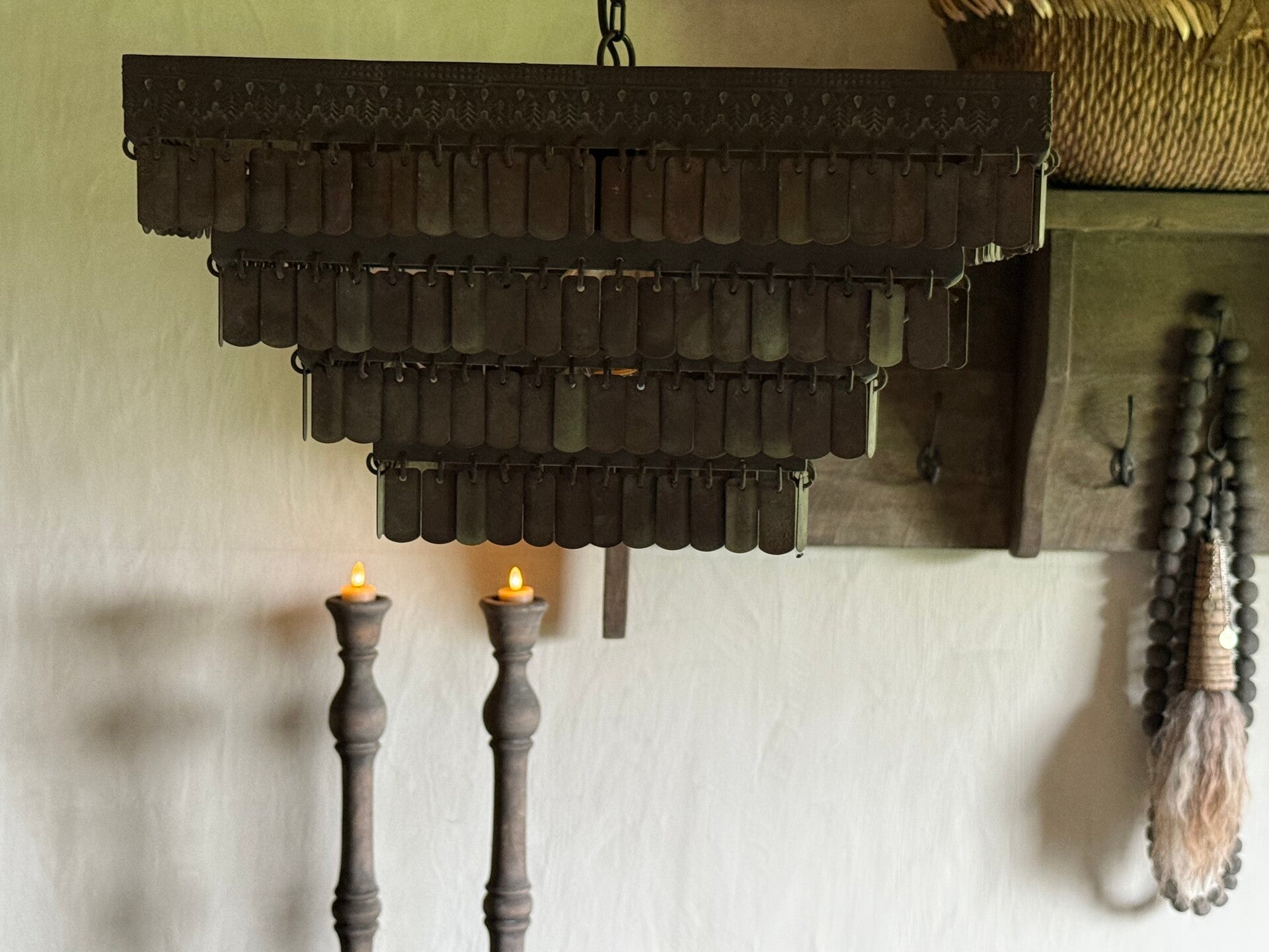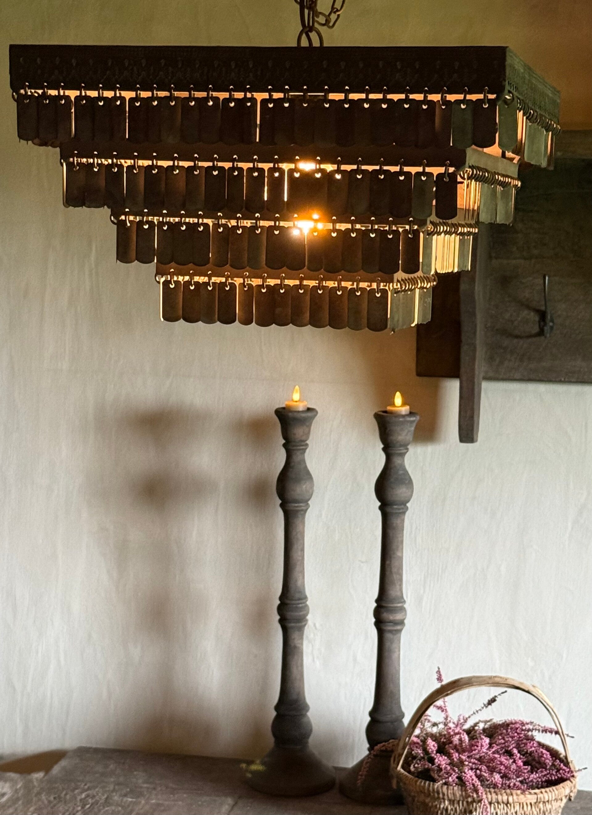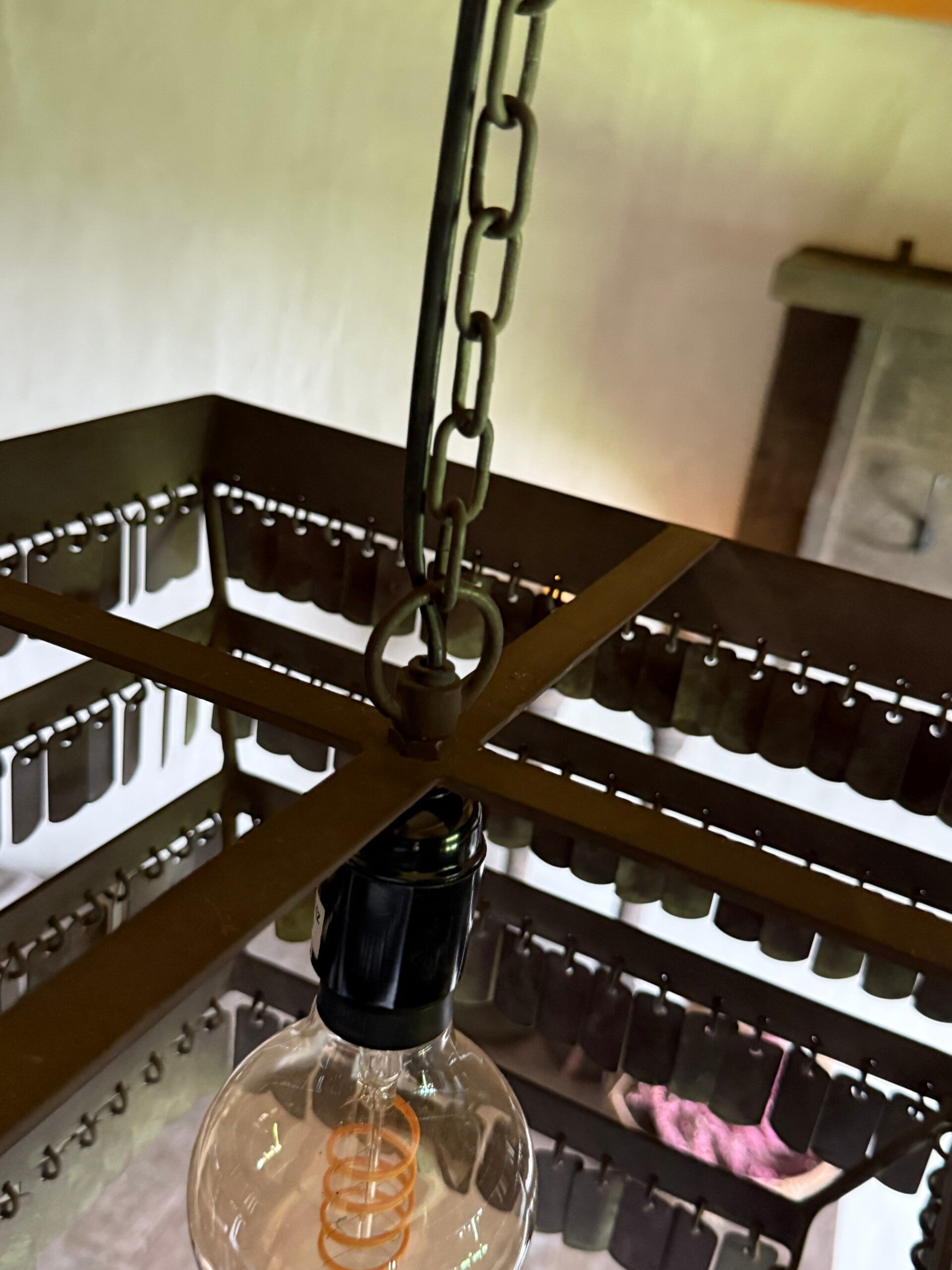Prachtige lamp met kleine metalen schijfjes.