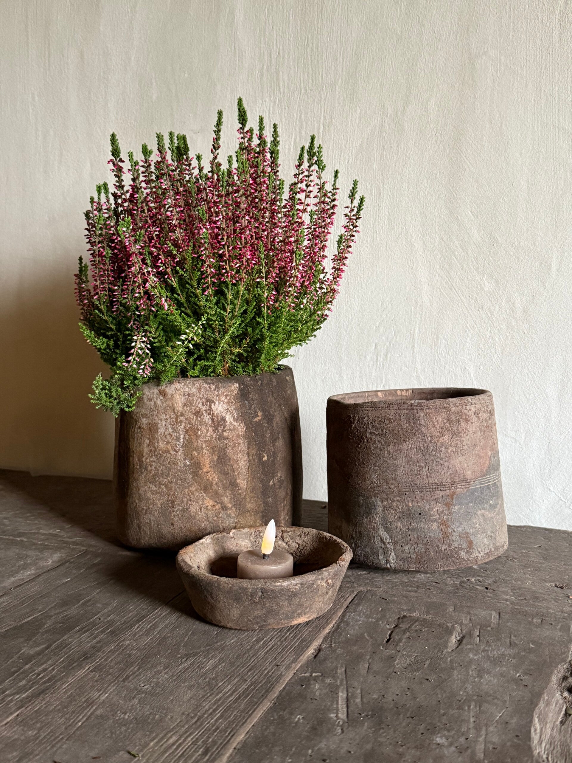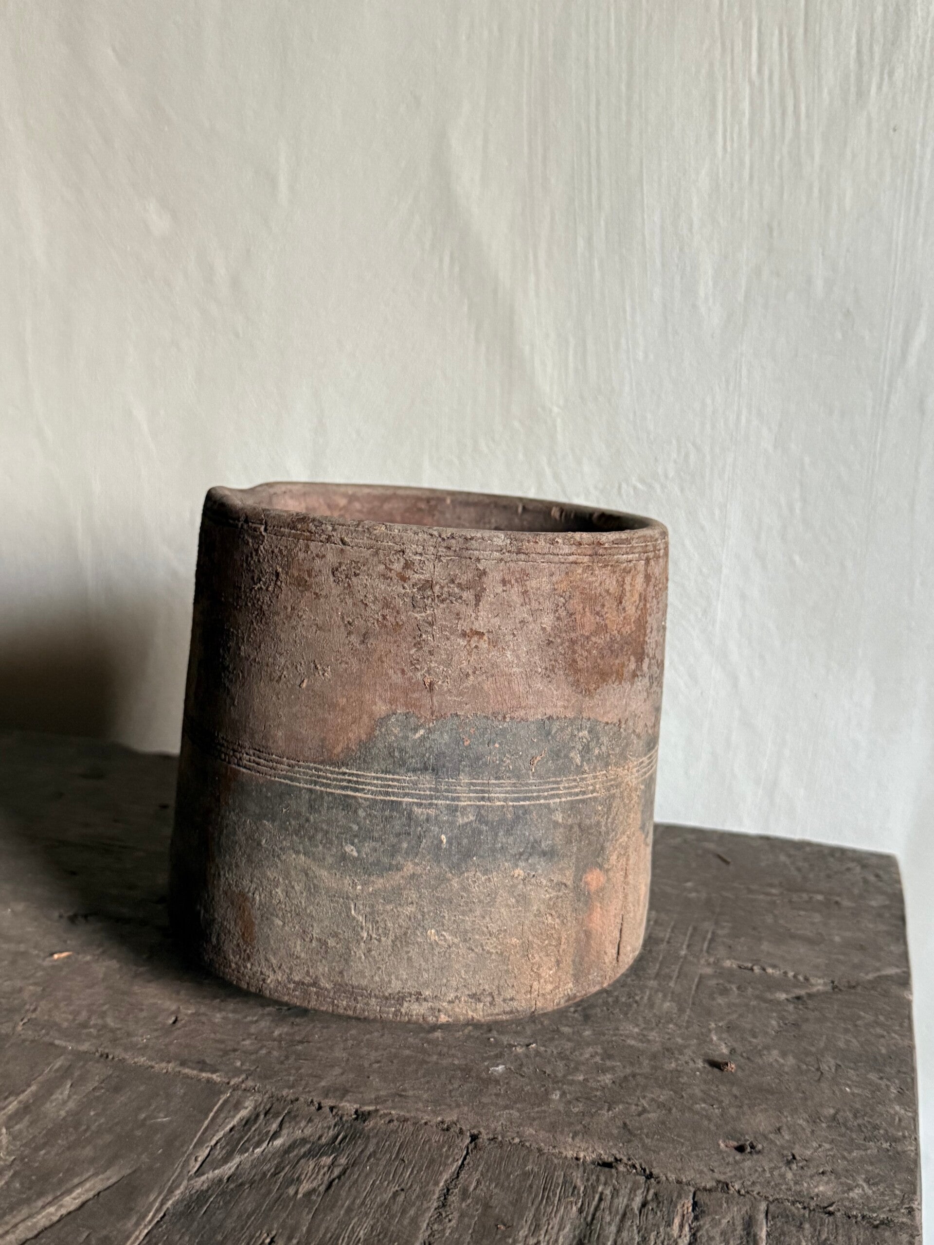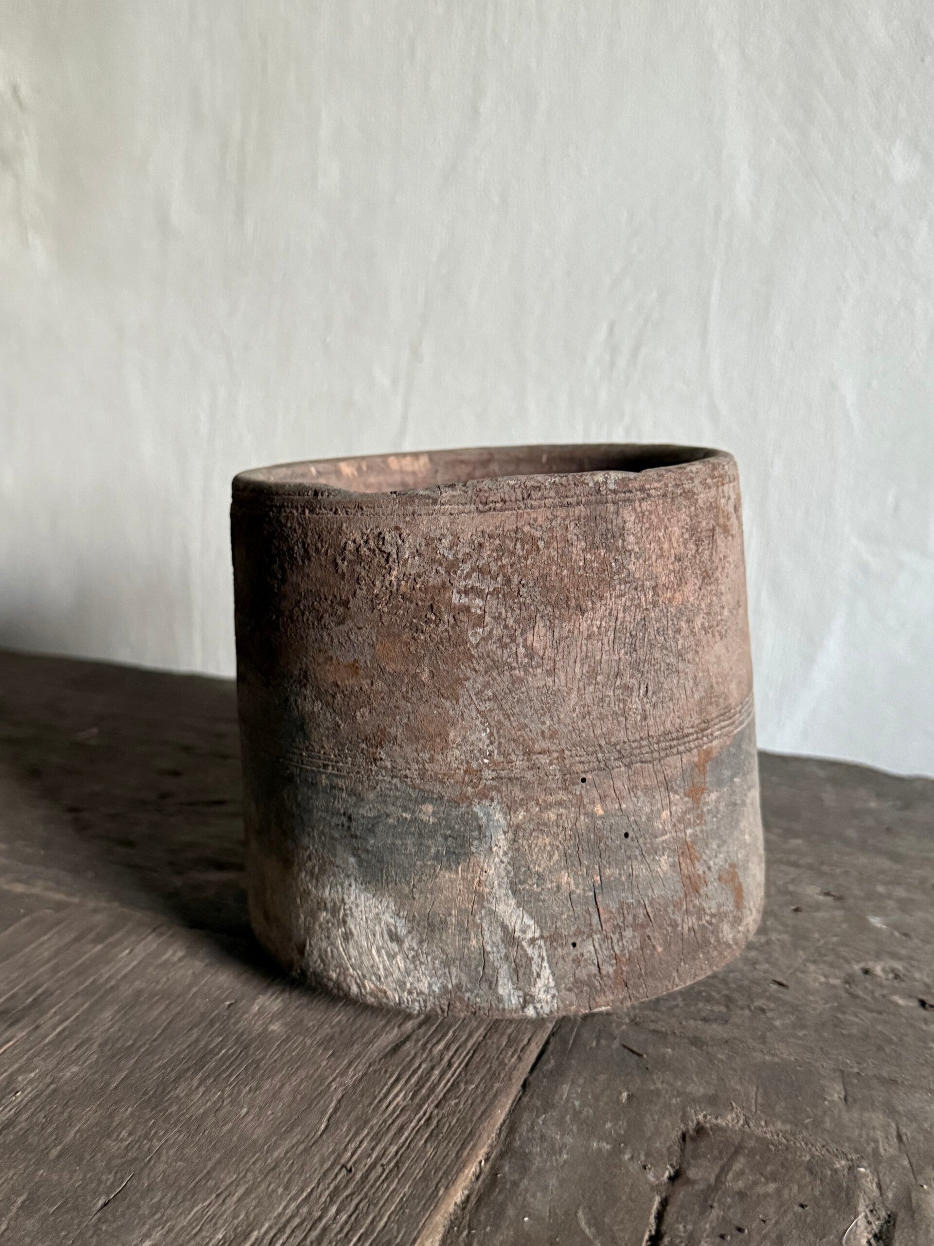 Heel leuk oud houten potje, bodem is niet super vlak