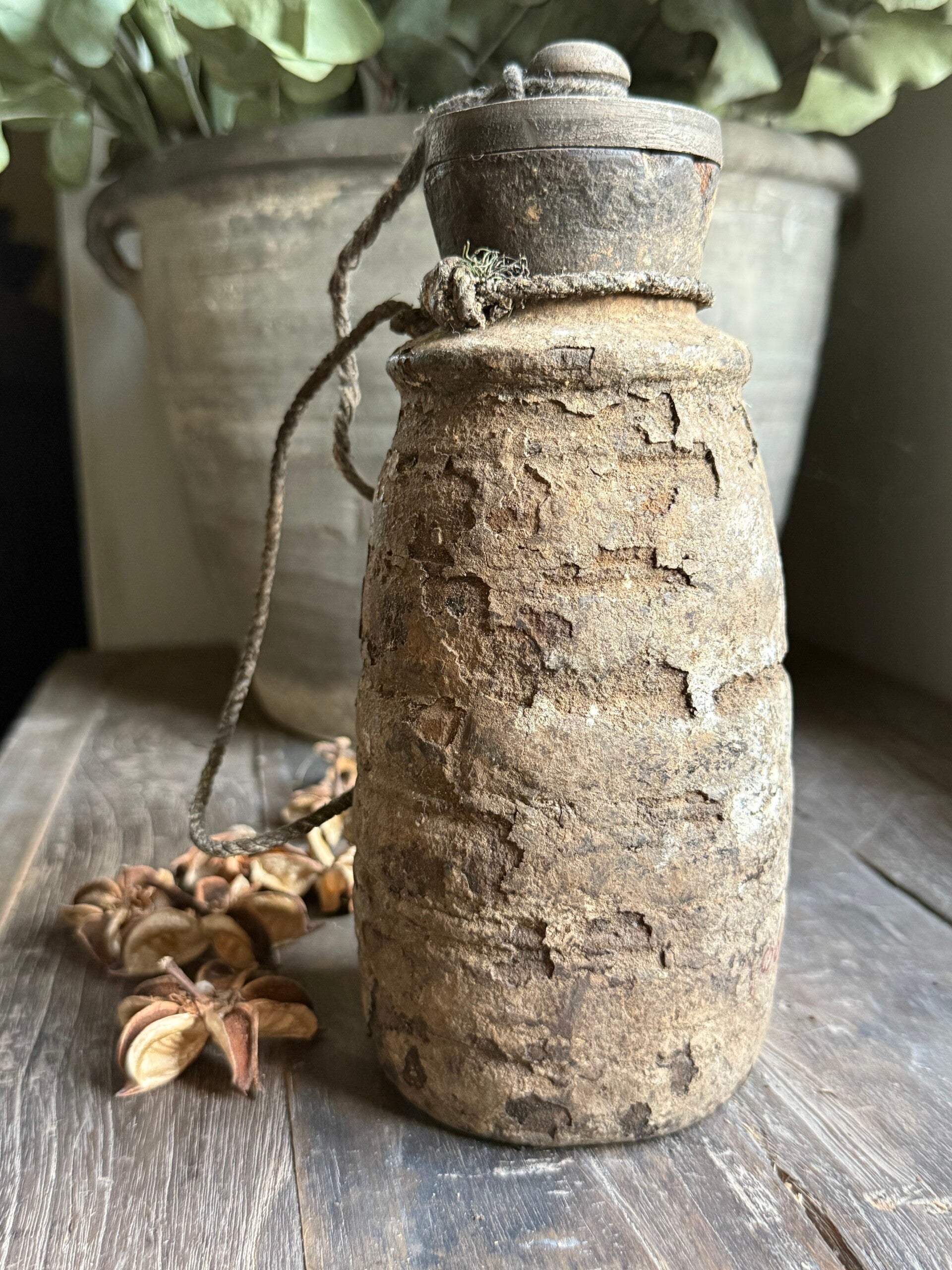 Prachtige schattig nepalese kruikje met een mooi sober patina met touw en deksel!