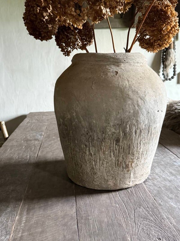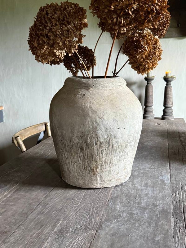 afmetingen zijn: circa 46 cm hoog en het breedste deel is circa 41 cm doorsnede, bodem is ca 31 cm doorsnede. De opening is circa 16,5 cm