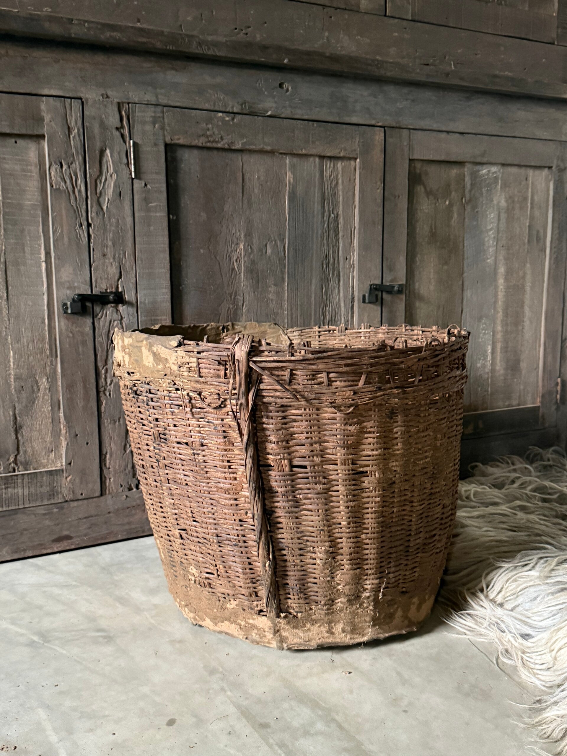 Grote leemmand, nu perfect voor een kerstboompje, later als leuke mand met bv plaids of een plant. Ook mooi zonder iets