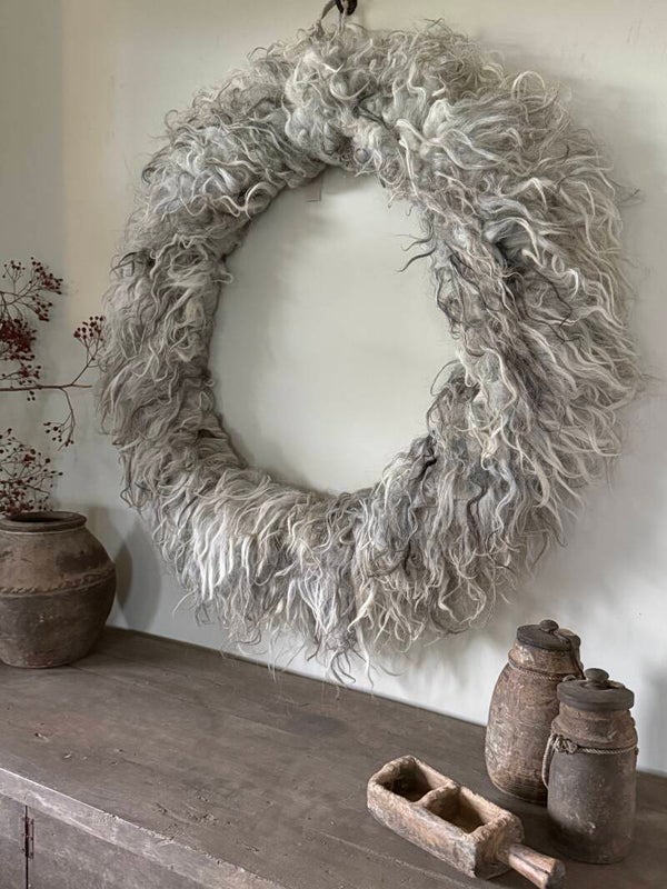 Een mooie en grote! Wolkrans, gemaakt van schapenwol, diervriendelijk.