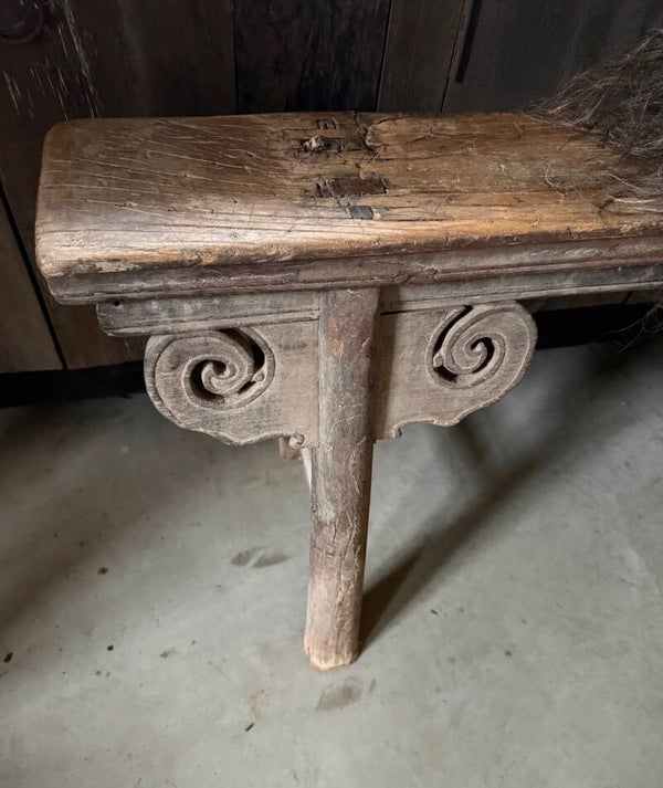 Mooie oud bank met krul. Zo'n bankje staat natuurlijk super in de gang, voor je bed, eigenlijk kan je het overal wegzetten.