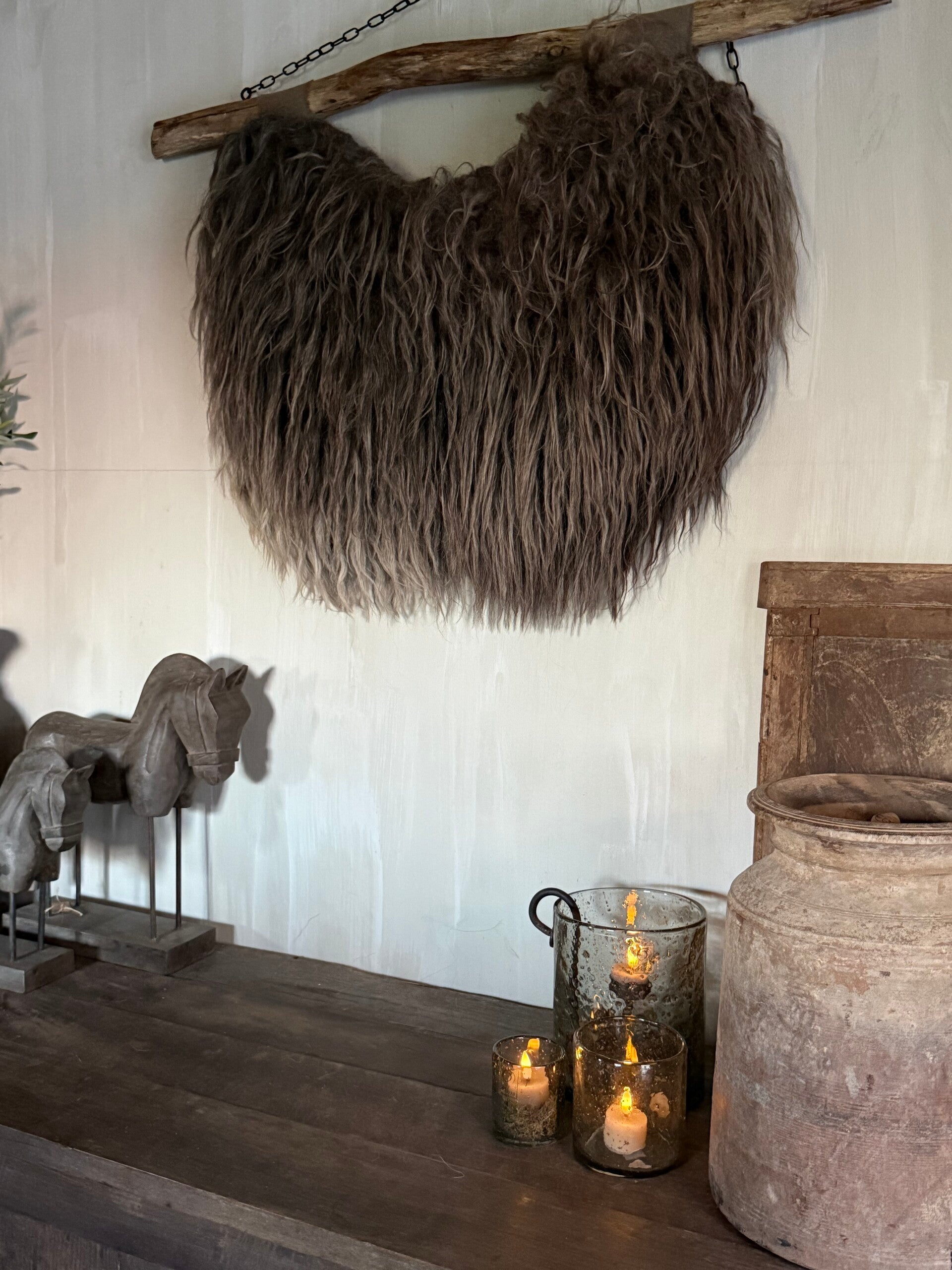 Alle vachten en wandhangers zijn uniek, er is er maar 1 exact hetzelfde. Is deze verkocht, maar deze sfeer van stoer, sober, landelijk en weer eens iets anders dan een schilderij wil jij ook? Dan is er de optie om indien er op dit moment niets beschikbaar is wat je zoekt, ik er 1 speciaal voor jou maak!! Neem dan even contact met mij op.