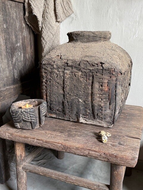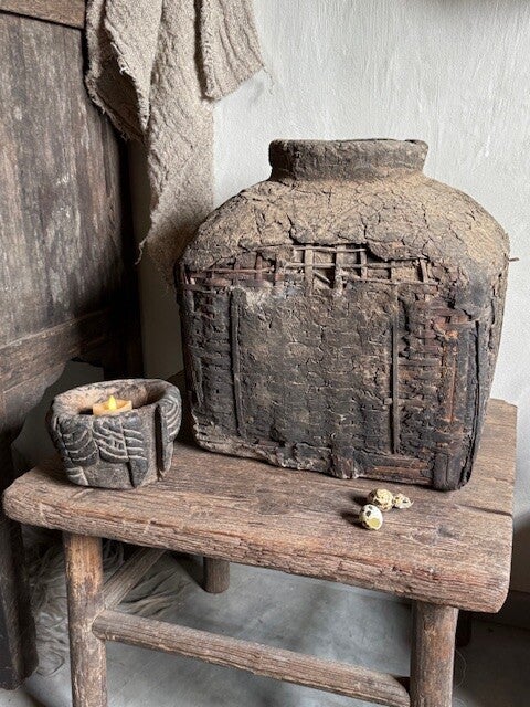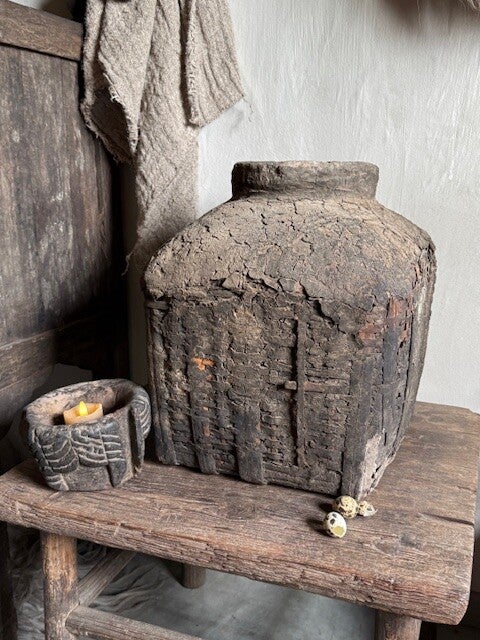 Prachtige donkere authentieke Leemkruik.