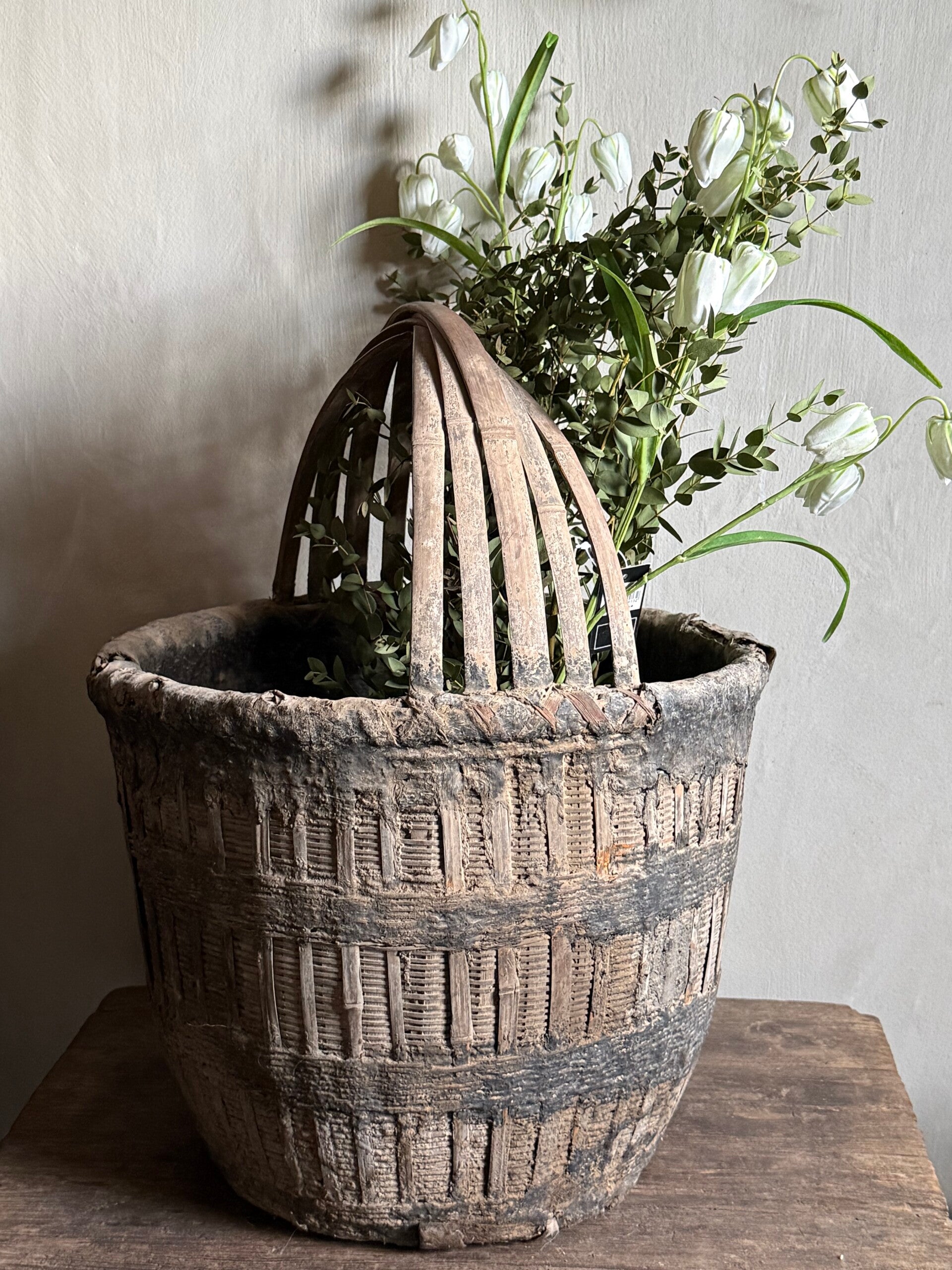 Mooie authentieke mand met een mooie sleetse kleur.