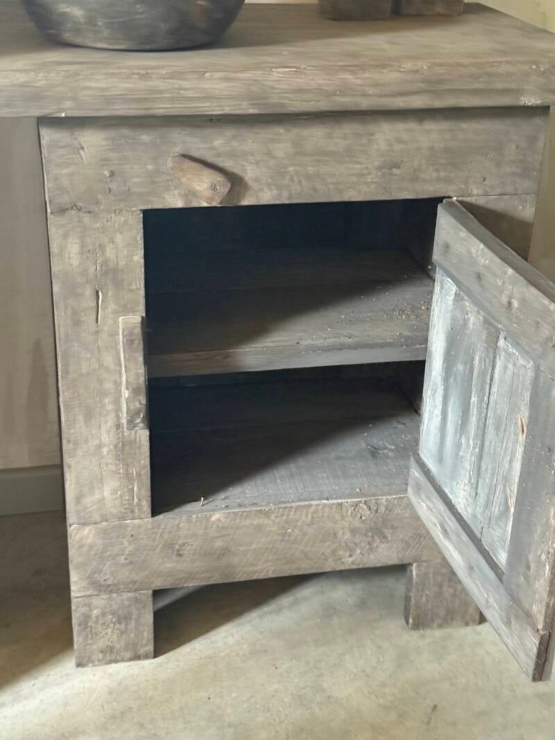 Dit ontzettend mooi stoer kastje van barnwood kan je als nachtkastje, maar zeker ook als kastje in de hal of bijvoorbeeld woonkamer etc gebruiken.
